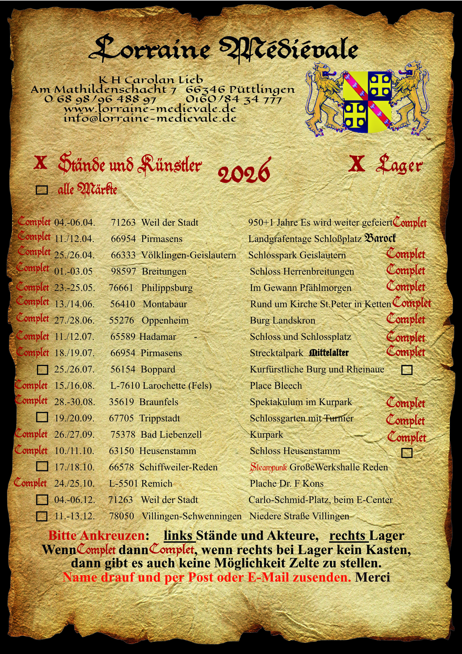 Anbei die Termine für 2026